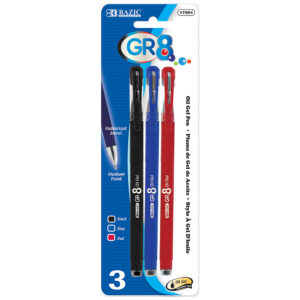 GR8 Assorted Color Oil-Gel Ink Pen w/ Rubberized Barrel (3/Pack)