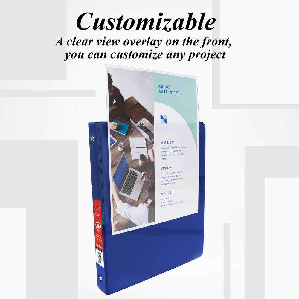 - GREAT DURABILITY. Designed and manufactured with enhanced durability featuring a tear-resistant cover with clear transparent view covers to insert or customize your binder on the front, back and spine. Two interior pockets for extra storage.