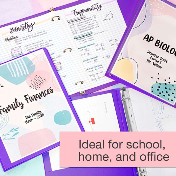 - ORGANIZE WITH EASE. Perfect binders for those school, office, classroom and college supply needs. Ideal for storing and archiving paper, reports, assignments, documents, projects, presentations.