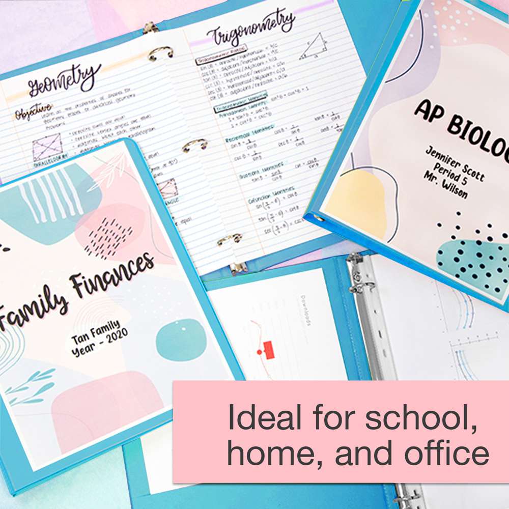 - ORGANIZE WITH EASE. Perfect binders for those school, office, classroom and college supply needs. Ideal for storing and archiving paper, reports, assignments, documents, projects, presentations.