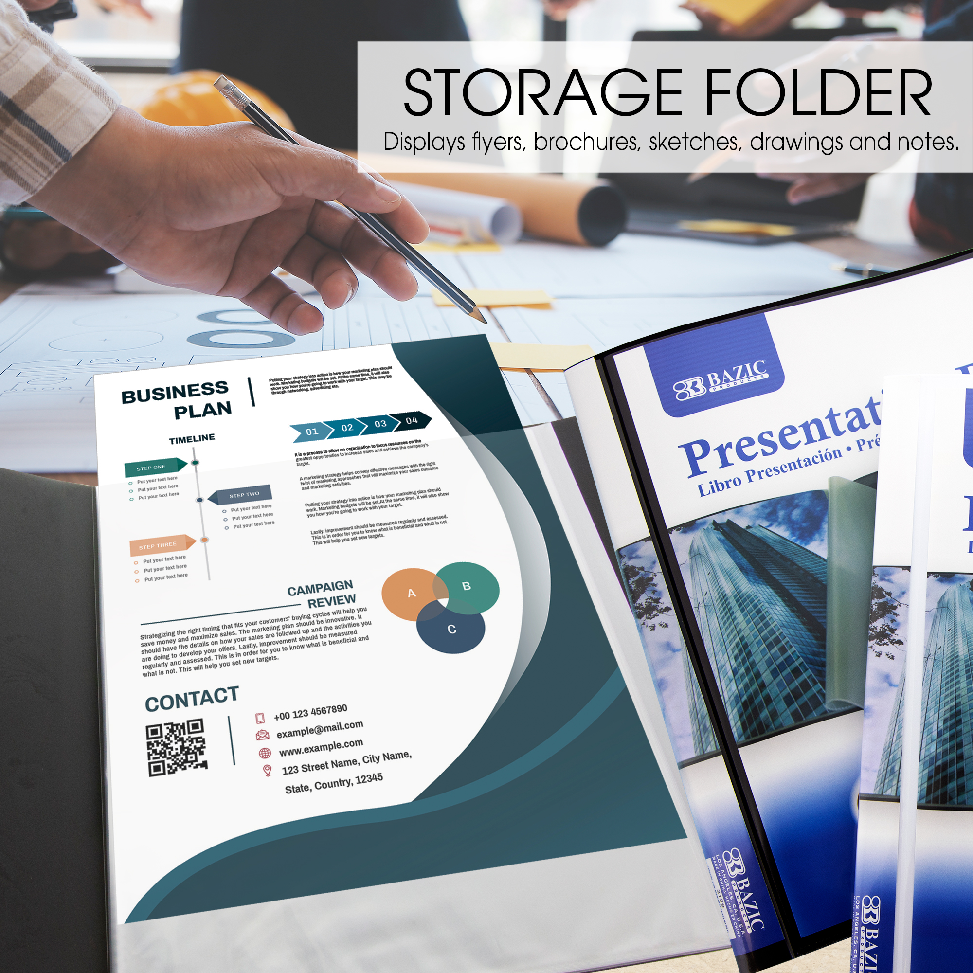 Insertable front cover and spine for customizable options. Permanent binding holds 8 1/2″ x 11″. 10 clear heat-sealed pages load from the top. 20 sheets capacity. Try other great BAZIC Products. We offer a wide range of stationery products for all your school and office needs.