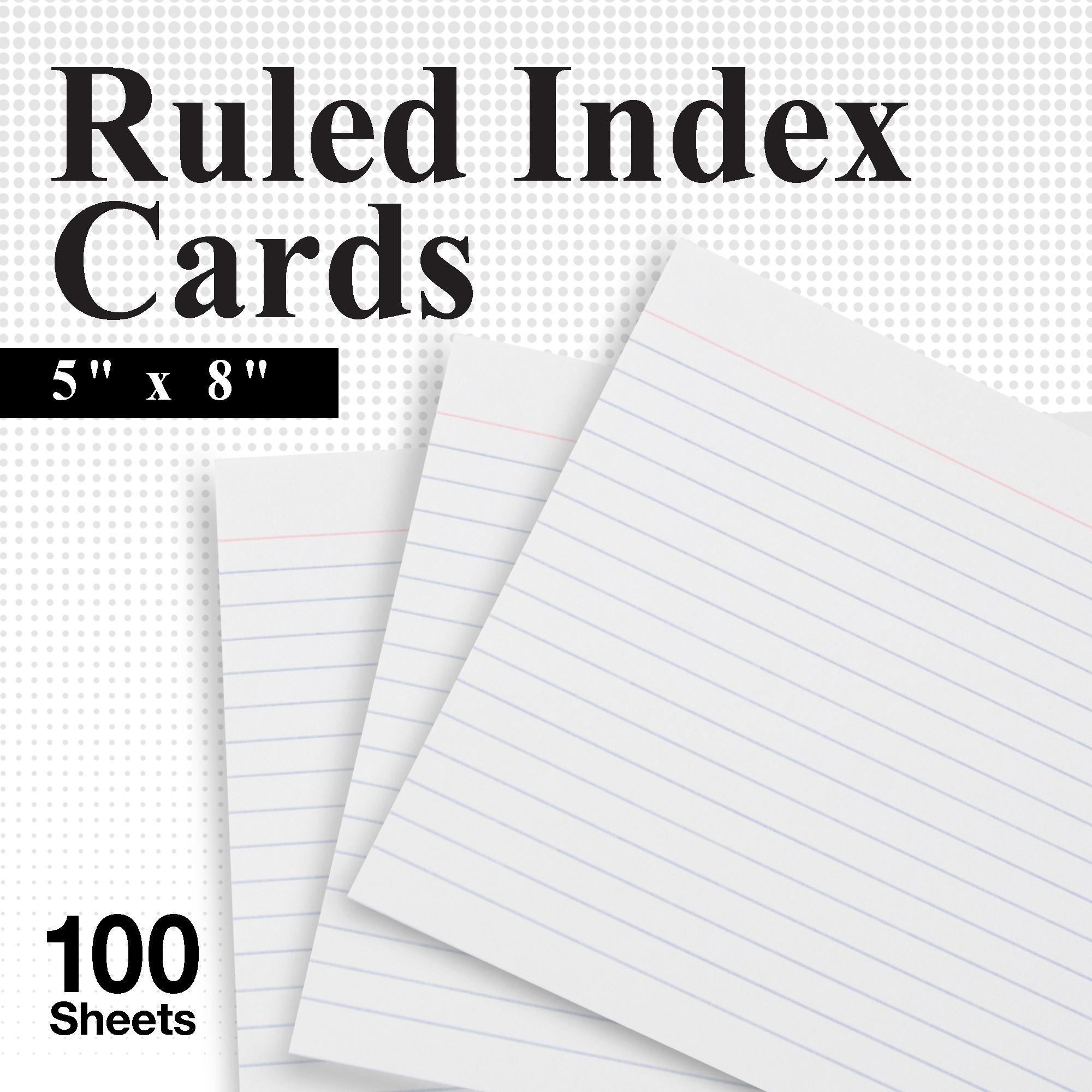 - PACKAGE INCLUDES. Ruled white index cards come with 100sheets in total per pack. These index cards have a ruled front and plain back.Size: 5″ x 8″inch