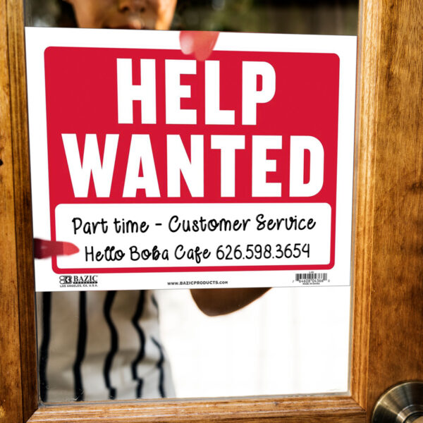 States “Help Wanted” in white and has a red backing. Durable plastic, weatherproofBright and highly visible12 inch x 16 inch help wanted sign Try other great BAZIC Products. We offer a wide range of stationery products for all your school and office needs.