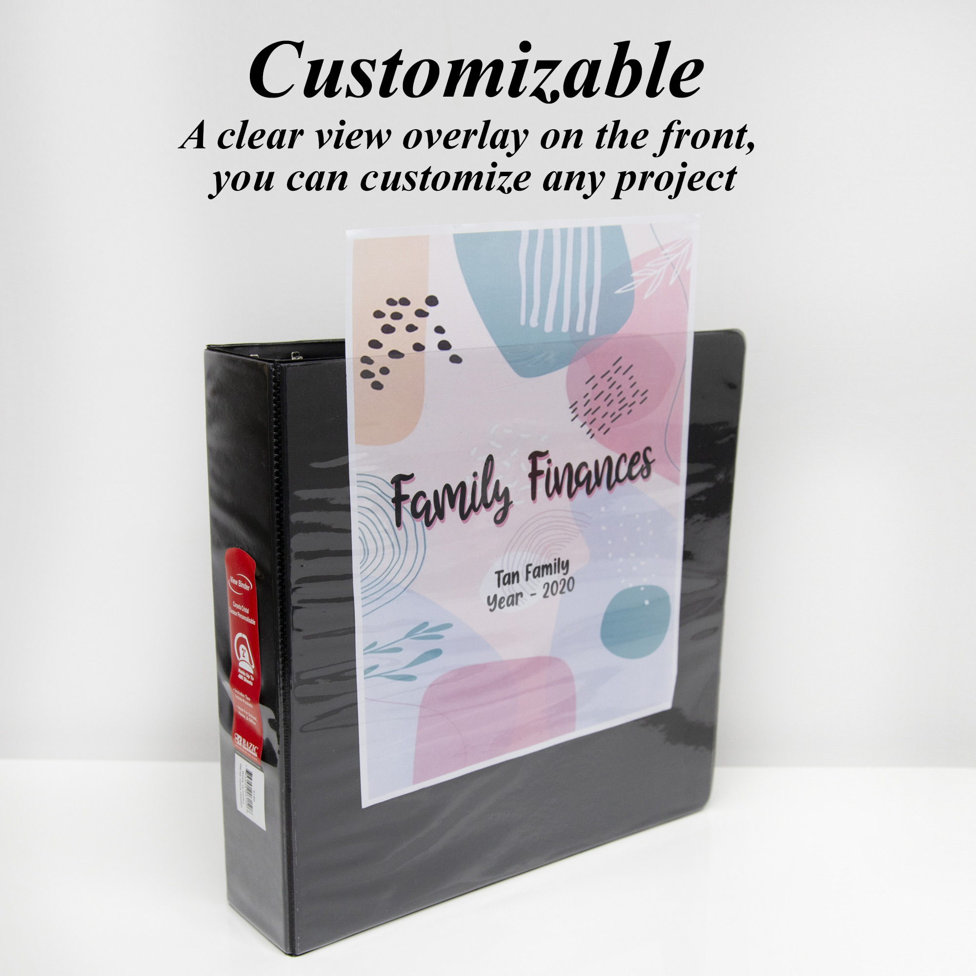 - GREAT DURABILITY. Designed and manufactured with enhanced durability featuring a tear-resistant cover with clear transparent view covers to insert or customize your binder on the front, back and spine. Two interior pockets for extra storage.