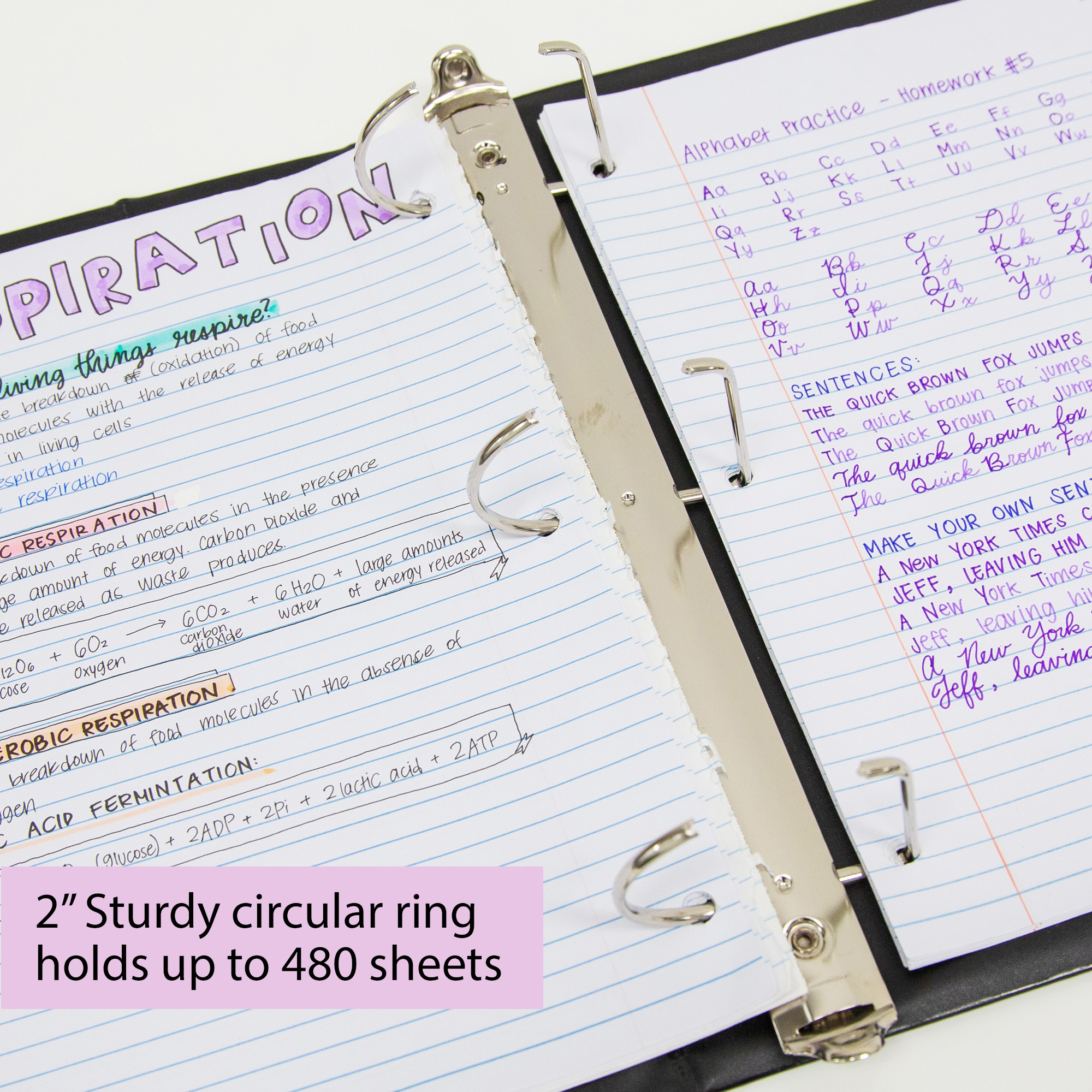 - ARCHIVAL SAFE. 2 Inch binder can hold up to 480 sheets / papers. Slanted mechanism not only stores more, but also allows you to turn pages more easily. Rings open and close easily for adding pages.