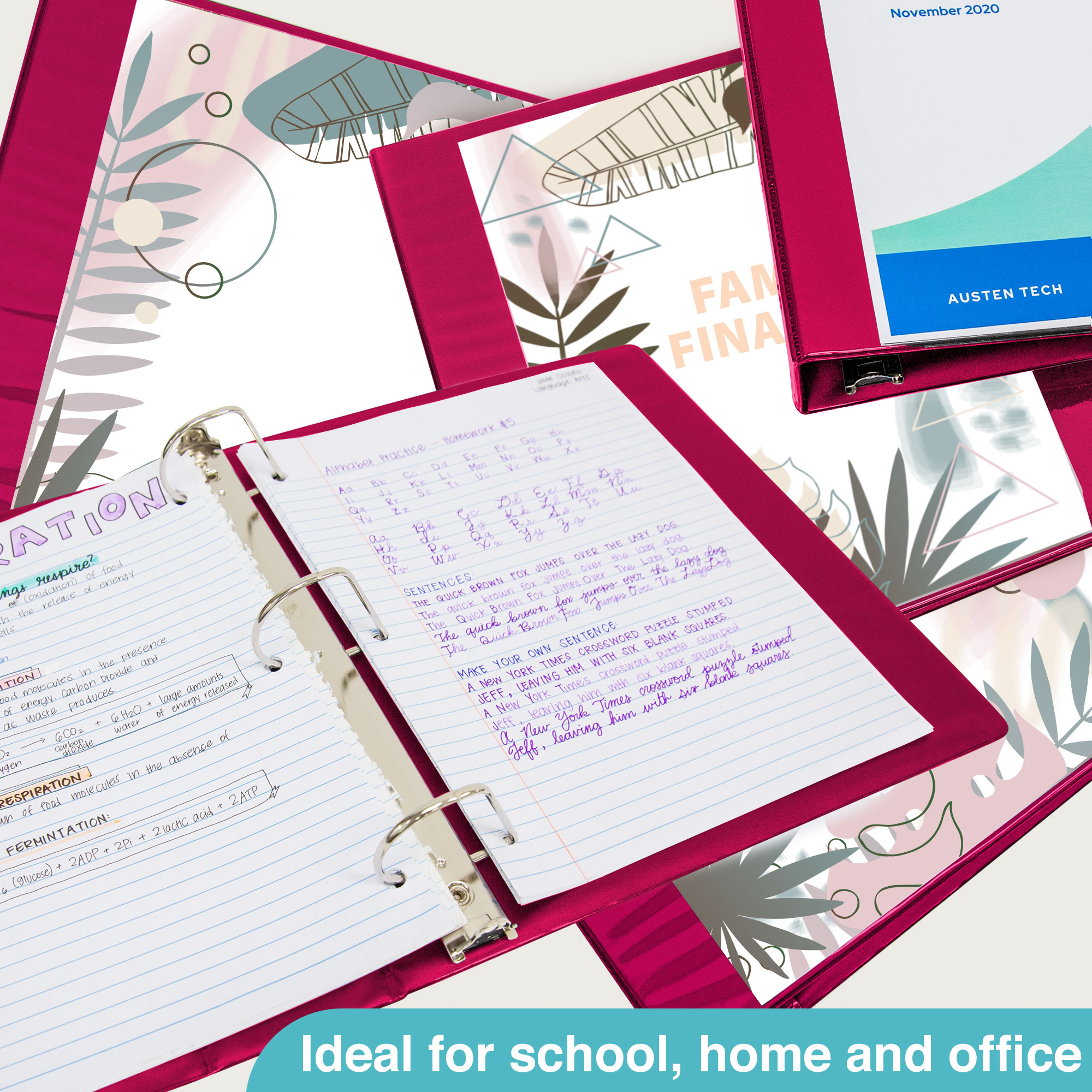 - ORGANIZE WITH EASE. Perfect binders for those school, office, classroom and college supply needs. Ideal for storing and archiving paper, reports, assignments, documents, projects, presentations.