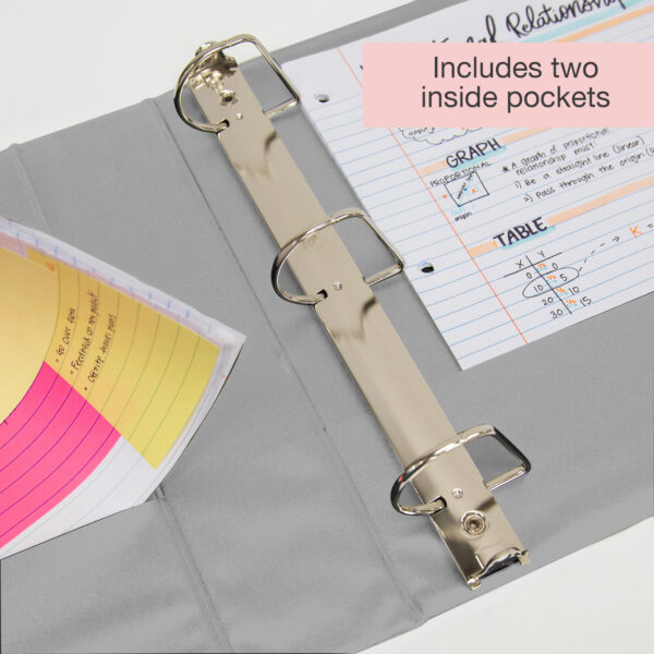 Binder View 2″ Grey Slant-D Ring w/ 2 Pockets