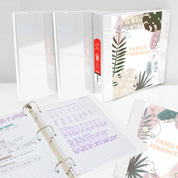- GREAT DURABILITY. Designed and manufactured with enhanced durability featuring a tear-resistant cover with clear transparent view covers to insert or customize your binder on the front, back and spine. Two interior pockets for extra storage.