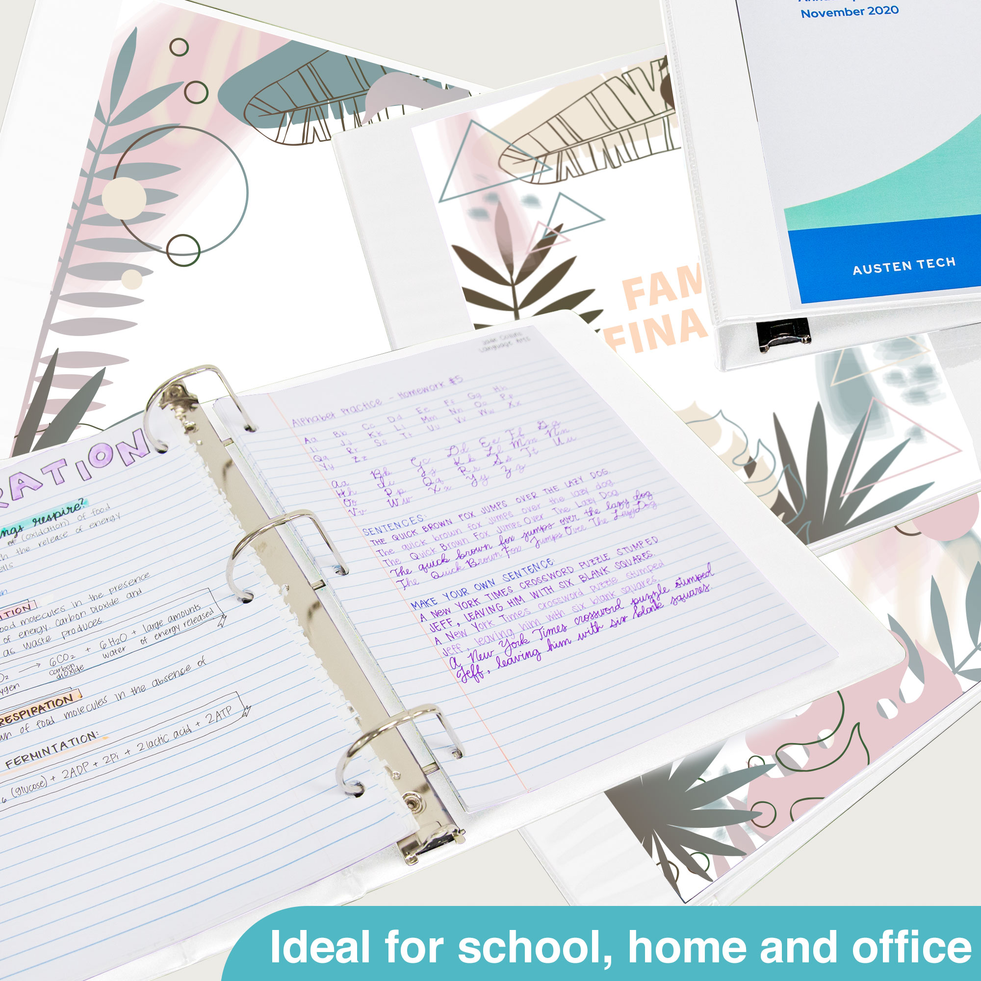 - ORGANIZE WITH EASE. Perfect binders for those school, office, classroom and college supply needs. Ideal for storing and archiving paper, reports, assignments, documents, projects, presentations.