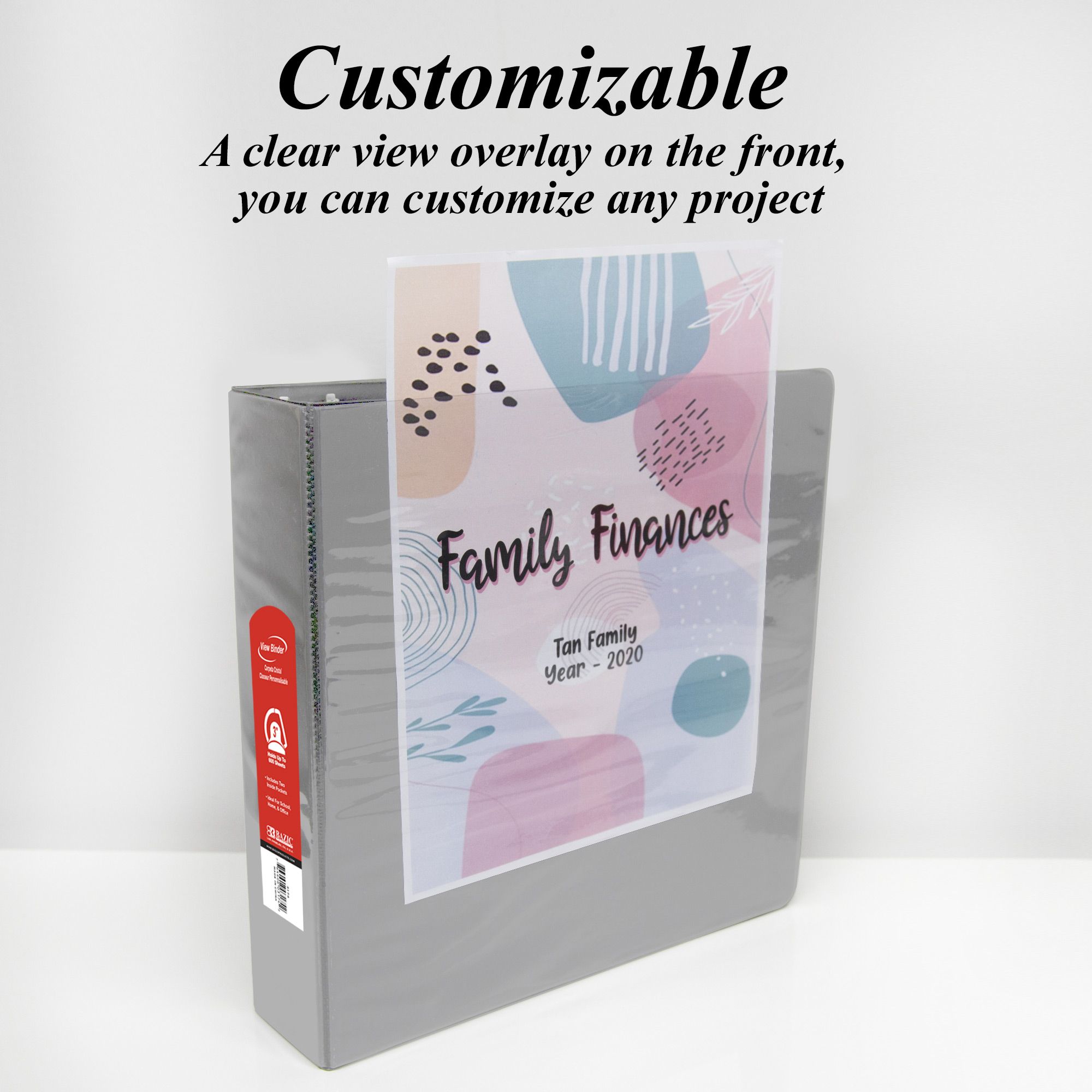 - GREAT DURABILITY. Designed and manufactured with enhanced durability featuring a tear-resistant cover with clear transparent view covers to insert or customize your binder on the front, back and spine. Two interior pockets for extra storage.