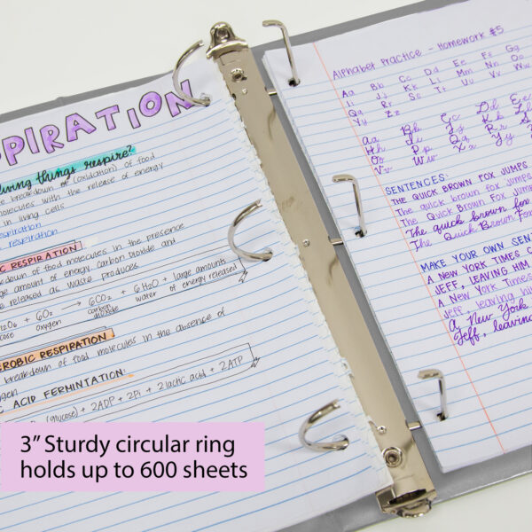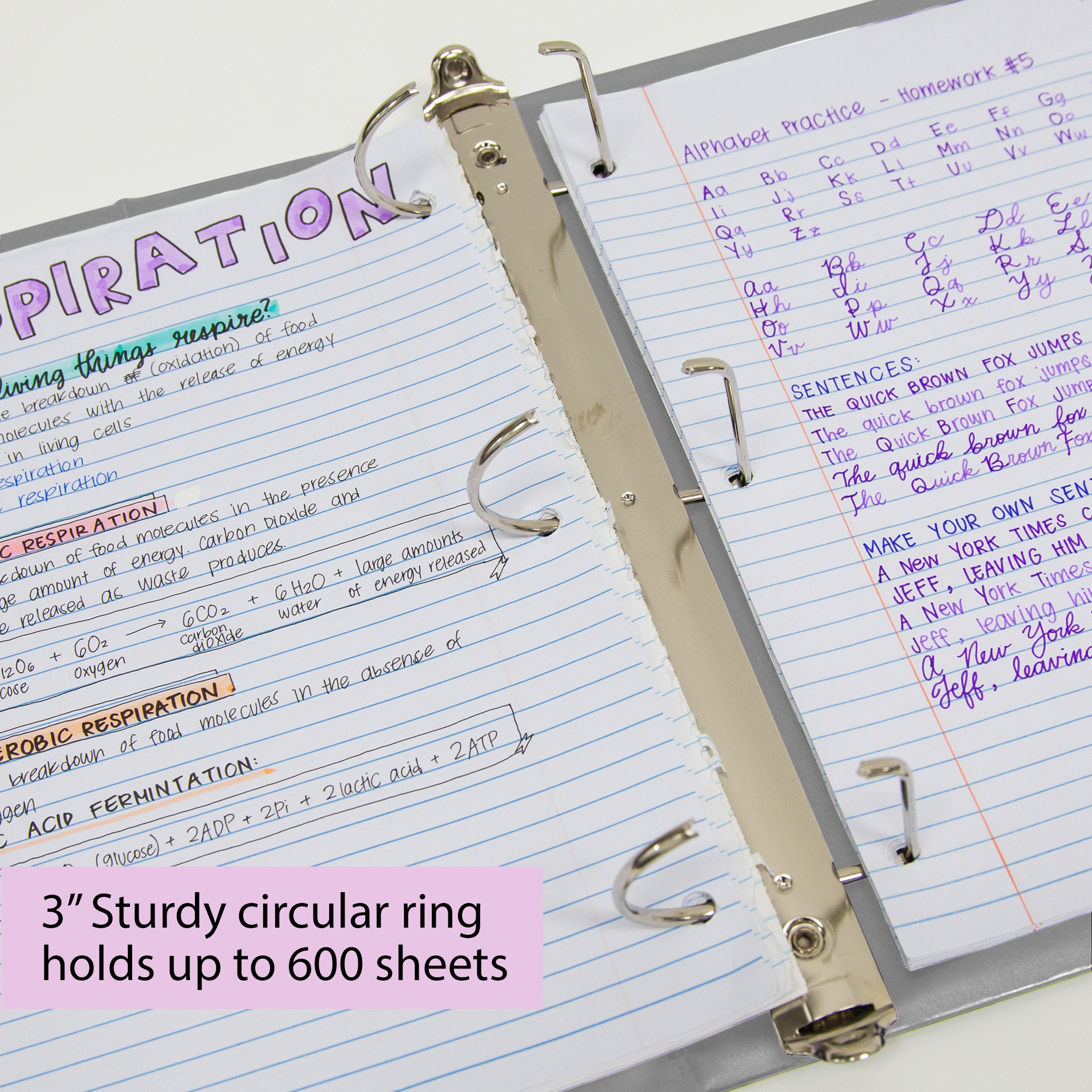 - ARCHIVAL SAFE. 3 Inch binder can hold up to 600 sheets / papers. Slanted mechanism not only stores more, but also allows you to turn pages more easily. Rings open and close easily for adding pages.
