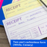 - TWO PART CARBONLESS FORMS. White & Canary 2 parts paper. Customers get the perforated white top copy; Retain the yellow copy for your records.