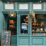 - CLOSED & OPEN SIGNAGE. Blue and white background, black text, with red clock’s arm. The high contrast lettering ensures high visibility from a distance. Ideal for retail, store, office, school.