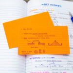 - DESIGN. The assorted fluorescent colored index cards are ruled on one side making it easy to write in neat, straight rows for note-taking. While the blank back is great for flash cards for studying.