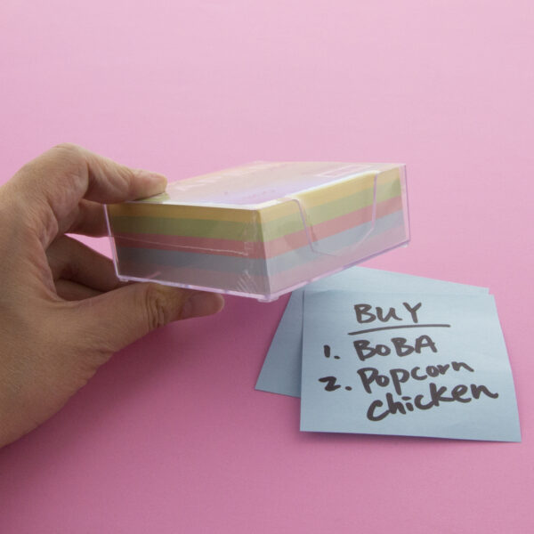 - CUSTOMIZABLE. Each measure 3 x 3 inches. 300-sheet per pack. Colored notepads paper available in 5 colors. Come with a sturdy PVC cubes box for easy storage and access.