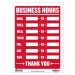 States “Business Hours” in white and has a red backing. Durable plastic, weatherproofBright and highly visible9 inch x 12 inch business hours sign Try other great BAZIC Products. We offer a wide range of stationery products for all your school and office needs.
