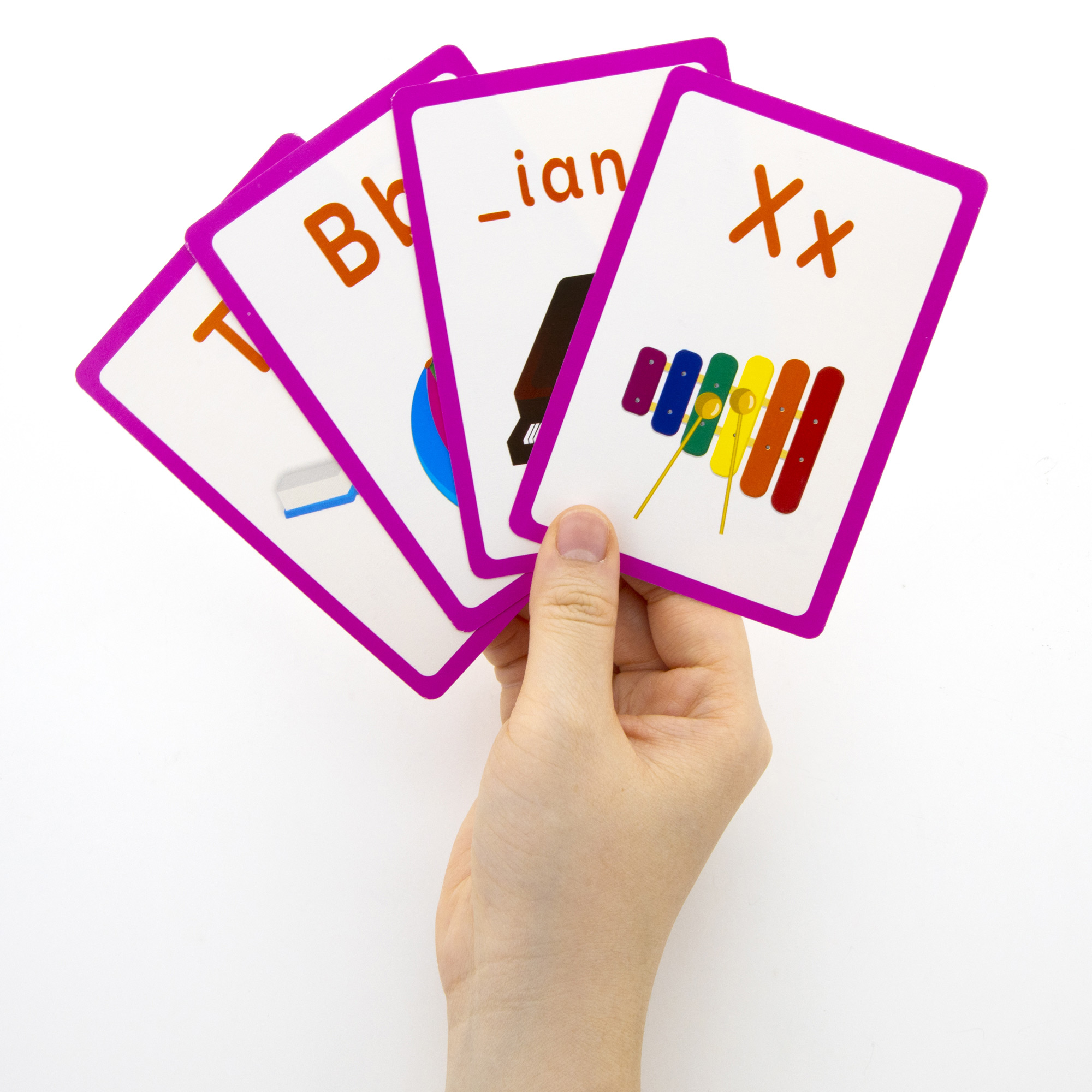 - FUN EDUCATING. Building your child’s vocabulary has never been so much fun! This flash cards help teaches kids beginning word, identify uppercase and lowercase letters.