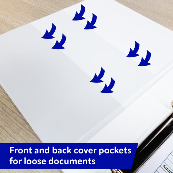 - ORGANIZE WITH EASE. 4 clear interior pockets for extra storage of loose papers; Perfect binders for school, office, classroom and college supply; Ideal for storing and archiving paper, reports, assignments, documents, projects, presentations