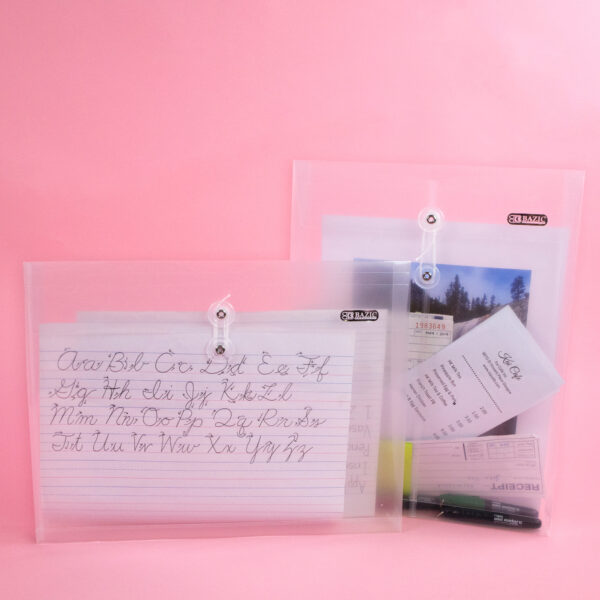 1-1/4 inch expansion. Side or top load style. Transparent for quick identification of content. Flap envelope with string closure secures documents. 2 Per Pack. Try other great BAZIC Products. We offer a wide range of stationery products for all your school and office needs.
