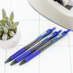 - DESIGN. Retractable pen is designed with convenient pocket clip allows for quick and easy access. Each pen is fitted with cushion grip making it very comfortable for users when using the product.