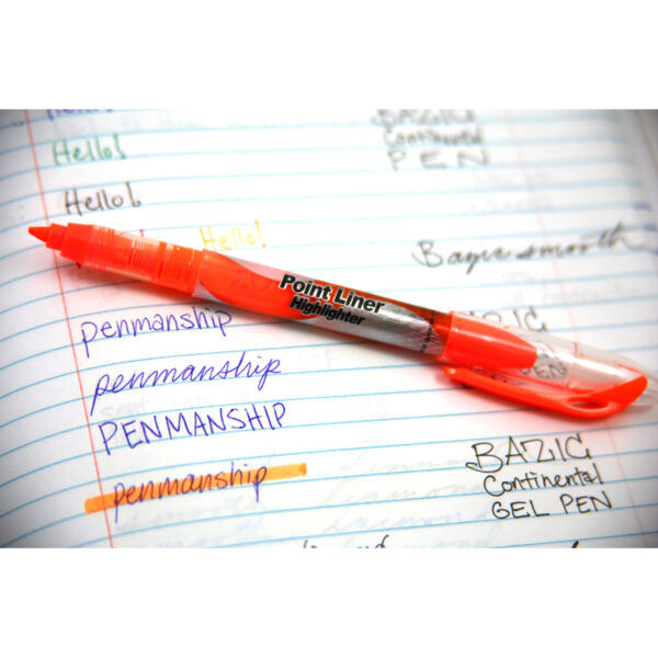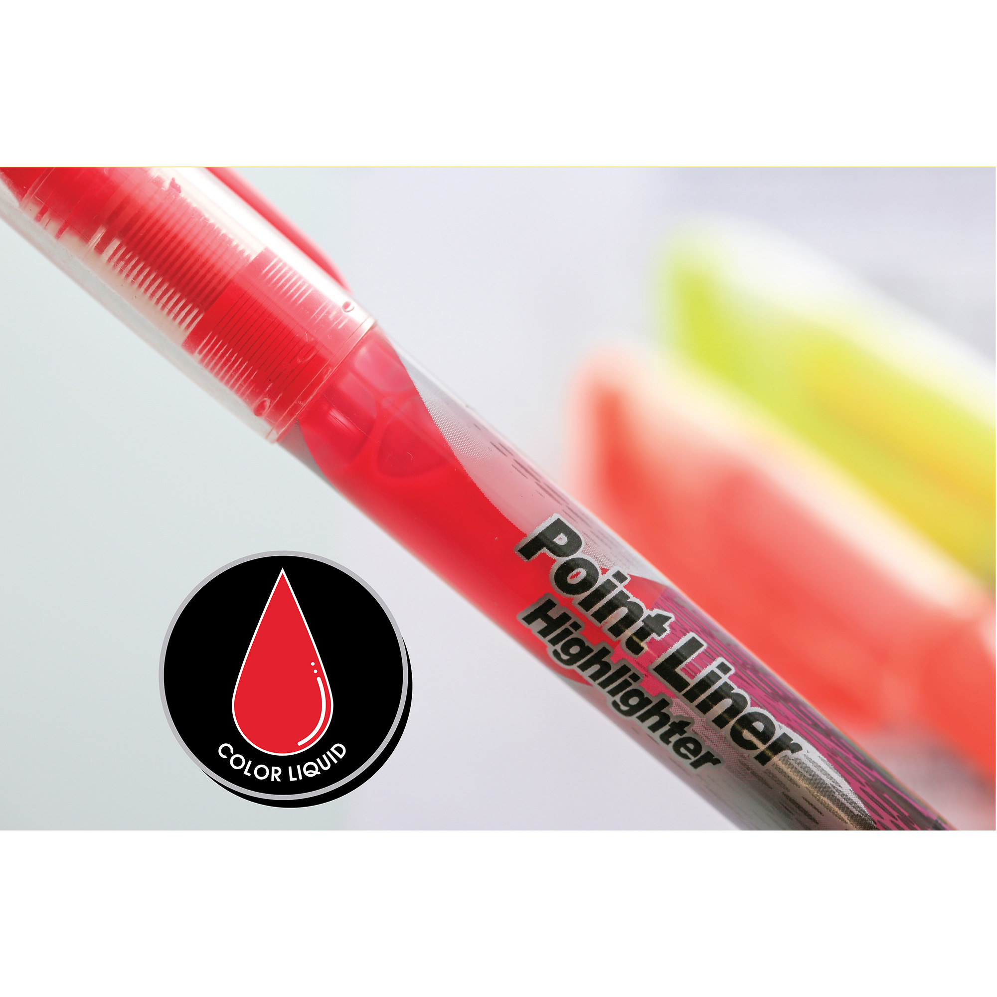 - POINT LINER DESIGN. Point Liner Liquid Highlighter ink is brighter than normal highlighter ink. Visible ink supply provides early warning of run-out. Pocket clip adds style and convenience.