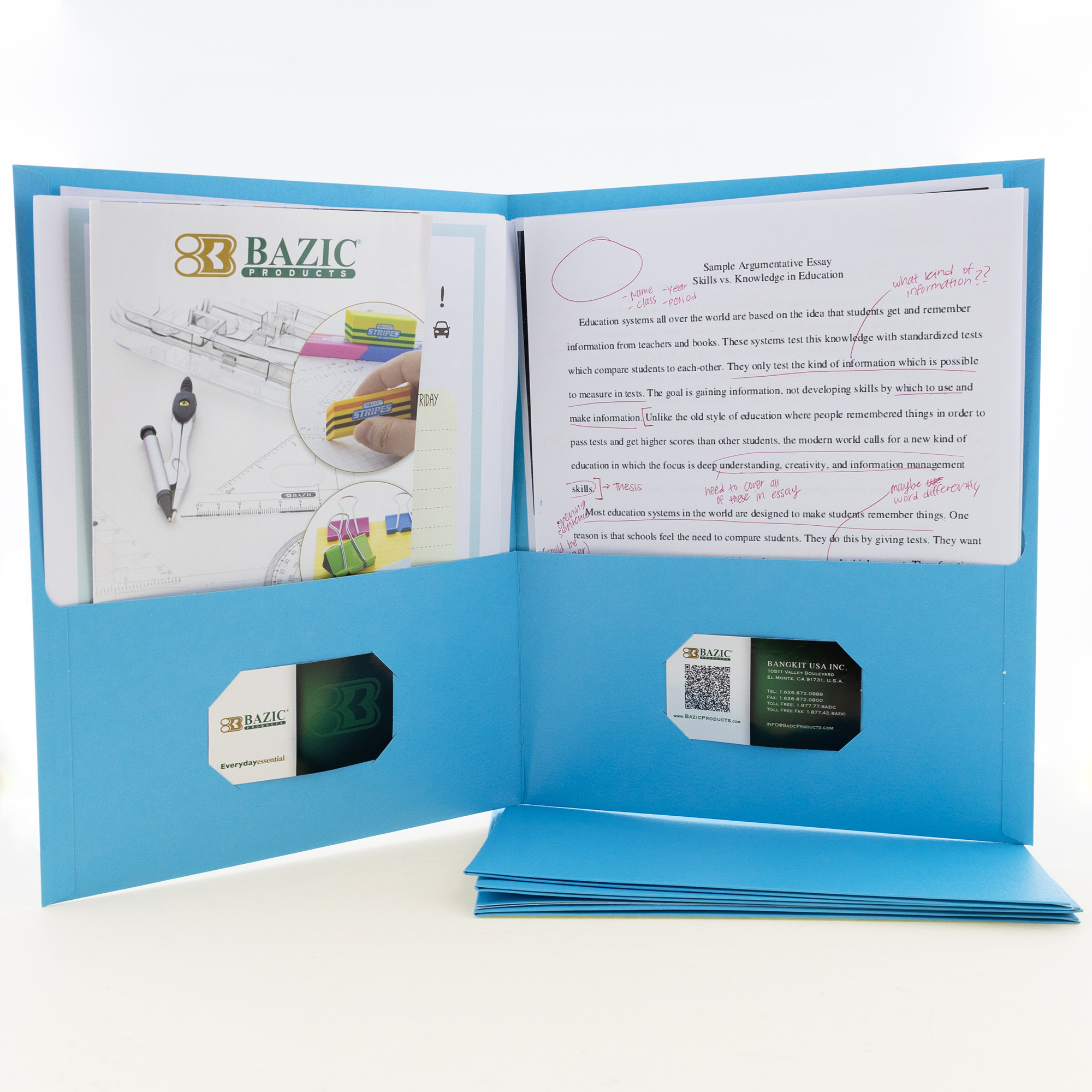 - FILE ORGANIZER. Premium Light Blue Color 2 pocket portfolios come with 25 folders per box. An extremely useful product for organizing or arranging papers, files or other similar items.