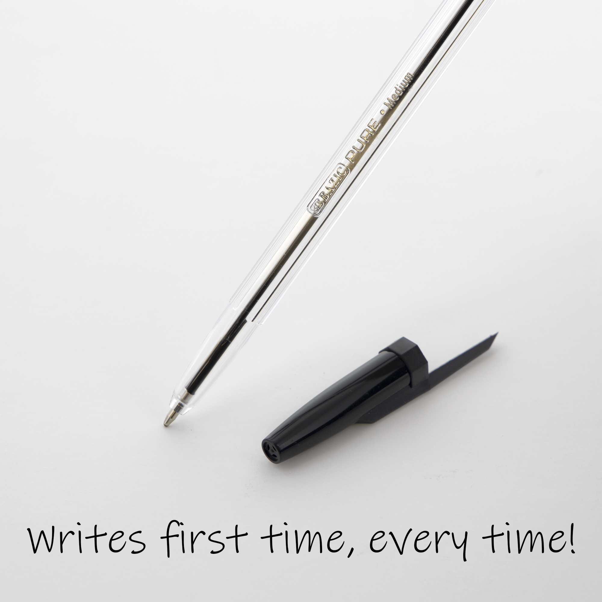 - PURE BLACK STICK PEN. Each pack comes with 12-Pure Black Stick Pens. The medium ball point spreads ink evenly as you write, offering dependable performance for everyday use.