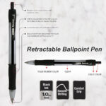 - DESIGN. Retractable pen is designed with convenient pocket clip allows for quick and easy access. Each pen is fitted with cushion grip making it very comfortable for users when using the product.