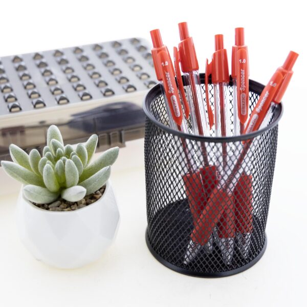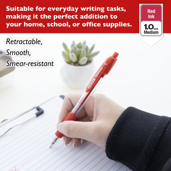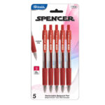 - SPENCER RED RETRACTABLE PEN. Each pack comes with 5-Red Retractable Pens. Medium ballpoint spreads ink evenly as you write, offering dependable performance for everyday use.